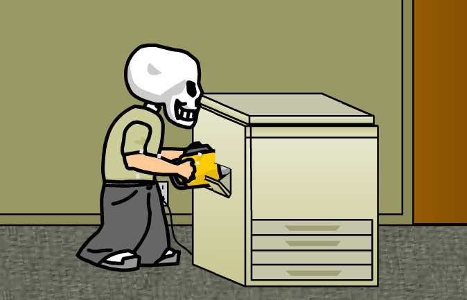 Use deadly weapons such as chainsaws and firearms. Walk around the office as the psycho and merciless Skull Kid and destroy everything and everyone in your way. This is a video showing the game the song I talk about appears at 219 and lasts a few seconds.